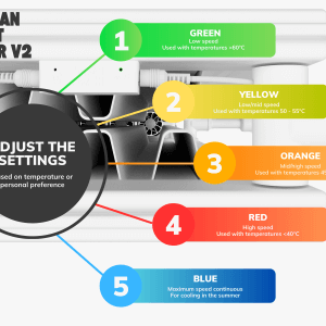 De Heatfan heeft een super nauwkeurige sensor ingesteld op 25,3 graden Celsius. Hierdoor zal de Heatfan alle warmte uit uw verwarming blazen. Door de klikbare hoekstukken is de Heatfan geschikt voor elke radiator of convector. Met gleuven tussen de ventilatoren zorgt de Heatfan voor zoveel mogelijk luchtdoorvoer en maximaal rendement.